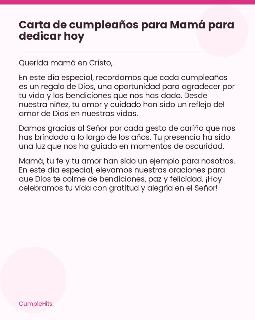 Carta de cumpleaños cristiana para Mamá para dedicar hoy